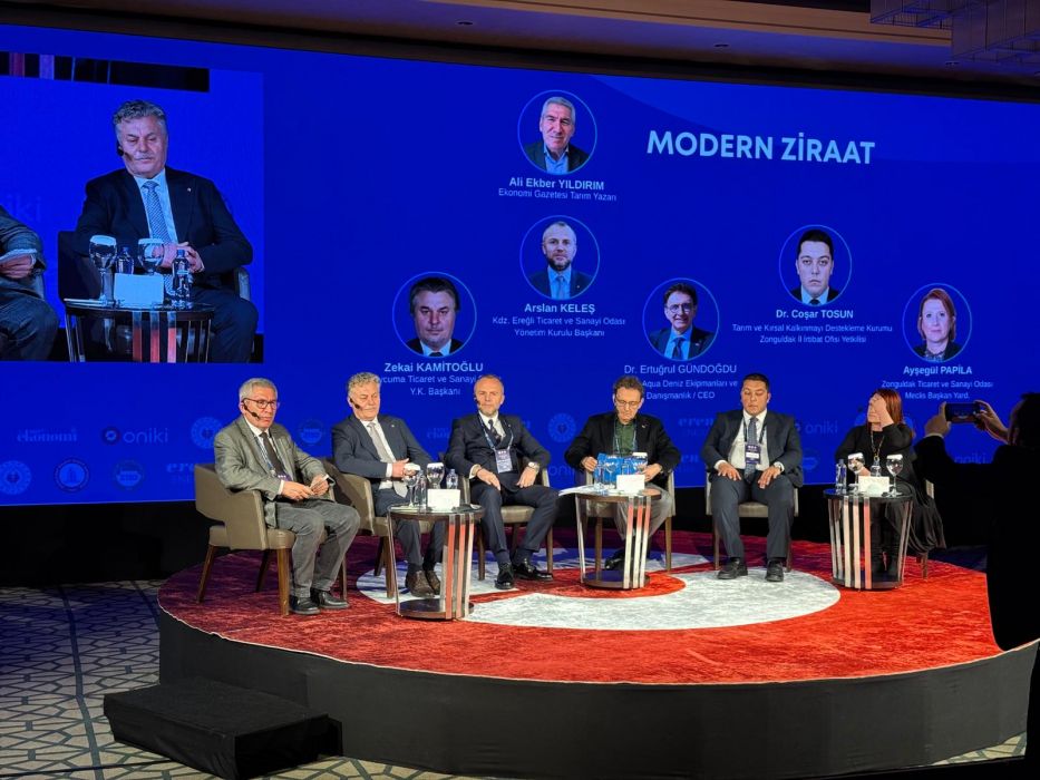 Kdz.Ereğli Ticaret ve Sanayi Odası Yönetim Kurulu Başkanı Arslan Keleş, meclis başkanı Tasin Tanyıldız ve yönetim kurulu üyeleri Ali Özkan, Cem Gül ve Genel Sekreter Gündüz Acar’ın katılım sağladığı ‘Zirve’de’ Başkan Keleş; Kdz.Ereğli ekonomisinin kalkınma taşlarından biri olacağını belirttiği kafes balıkçılığı konusunda katılımcılara bir sunum gerçekleştirdi.