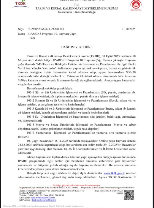TKDK IPARD-III Programı 10. Başvuru Çağrı İlanına çıktı