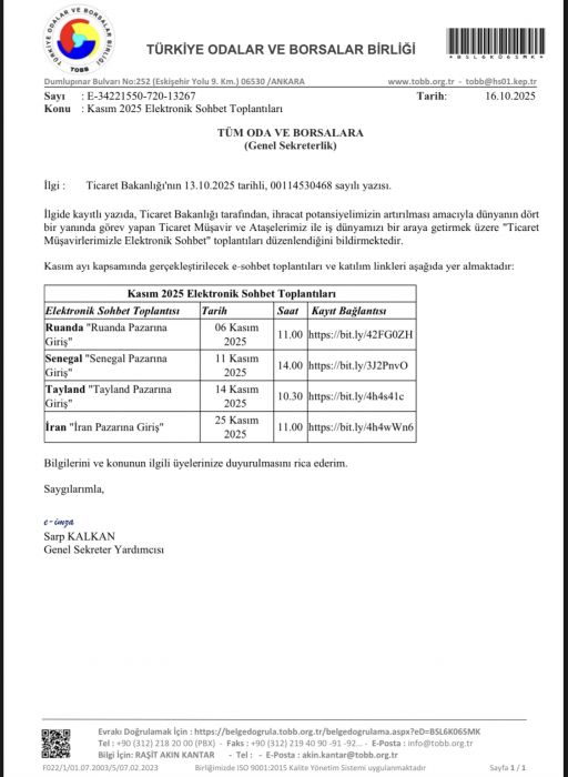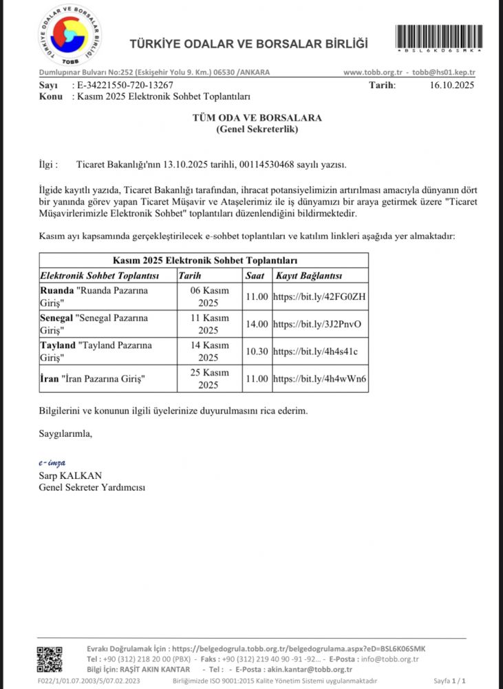Kasım 2025 Elektronik Sohbet Toplantıları...