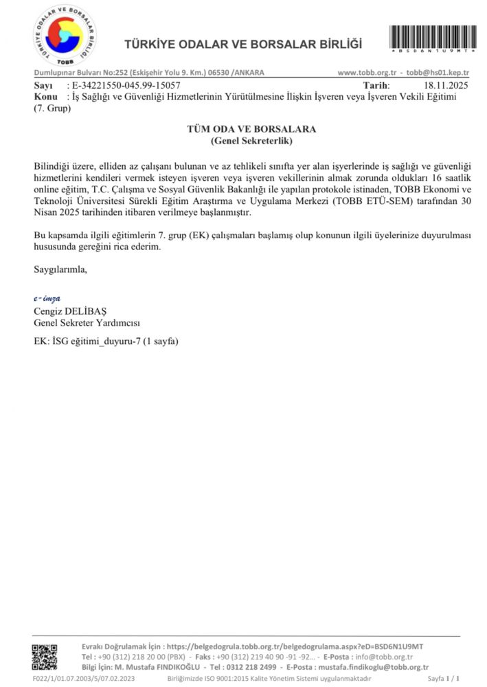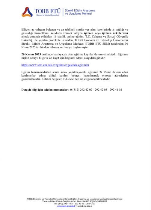 İş Sağlığı ve Güvenliği Hizmetlerinin Yürütülmesine İlişkin İşveren veya İşveren Vekili Eğitimi...