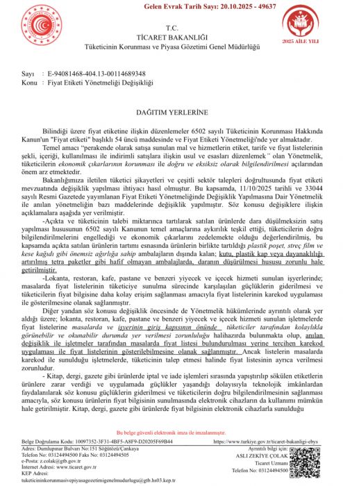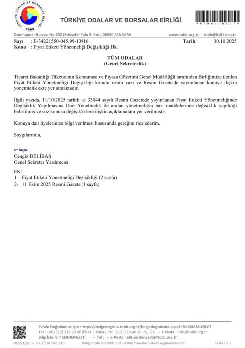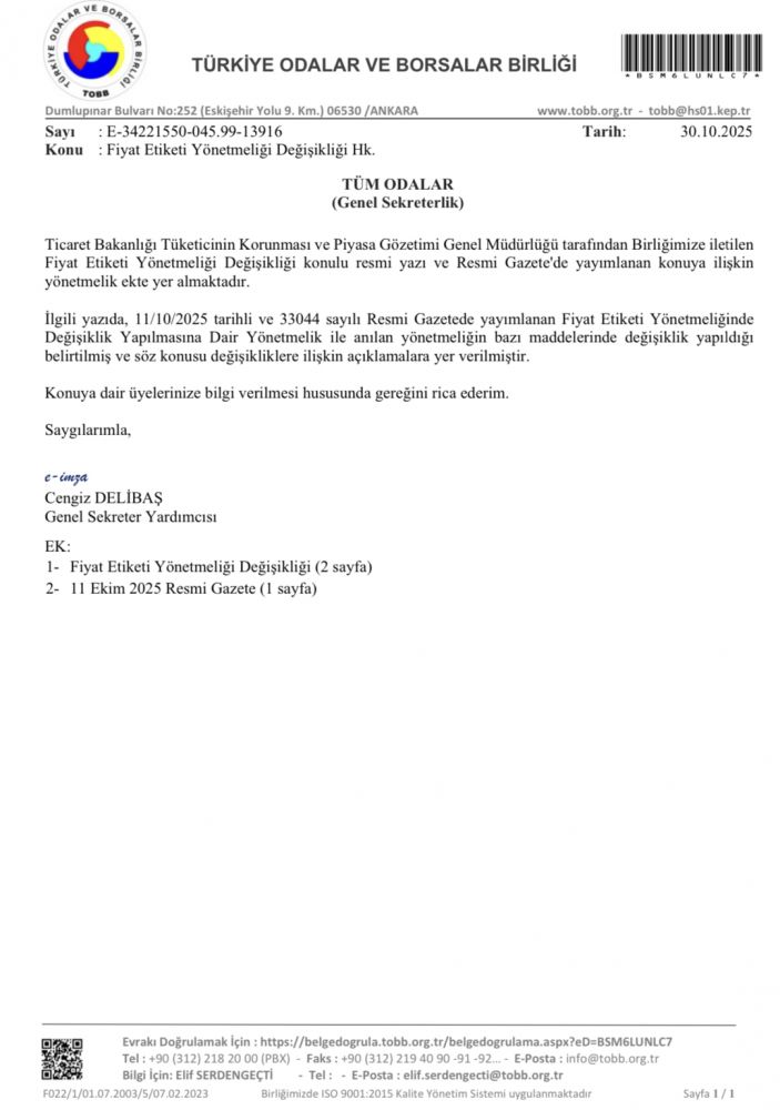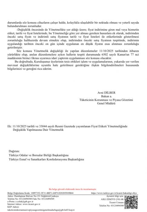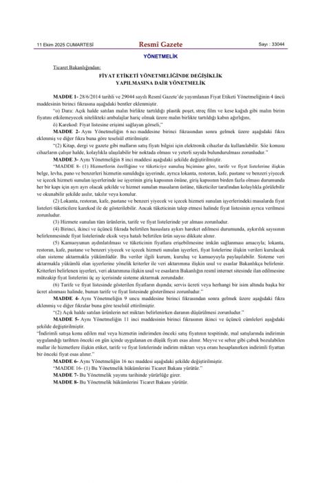 Fiyat Etiketi Yönetmeliği Değişikliği Hk....