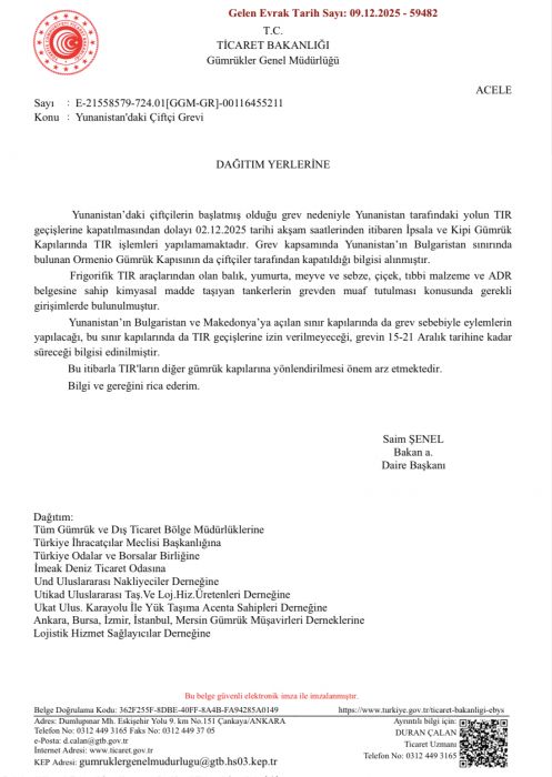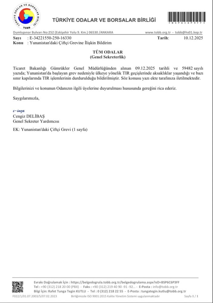 Yunanistan'daki Çiftçi Grevine İlişkin Bildirim...