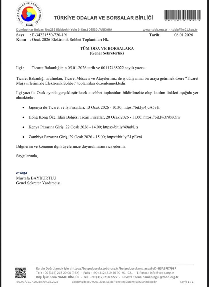 Ocak 2026 Elektronik Sohbet Toplantıları Hk.