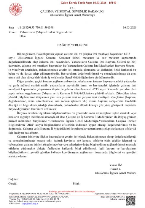 Yabancıların Çalışma İzinleri Bilgilendirme